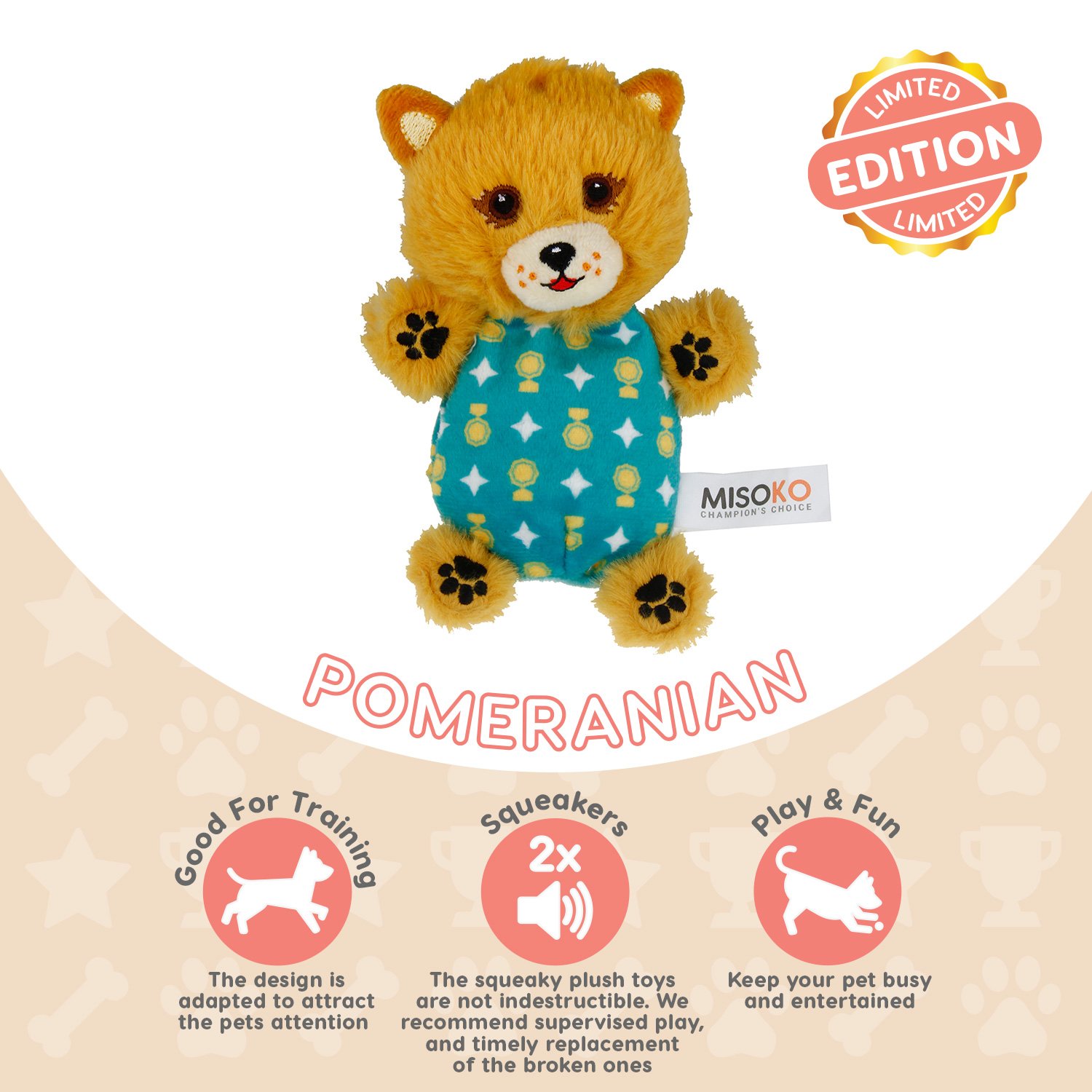 šis žaislas pasiūtas pagal animuotą Pomeranijos špico pavyzdį, todėl atrodo smagiai, gali atitikti ir Jūsų augintinio veislę! Žaisliuko pilvukas ryškiai oranžinės spalvos, kuri dar labiau patraukia augintinio dėmesį.