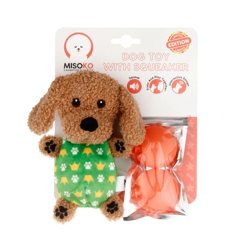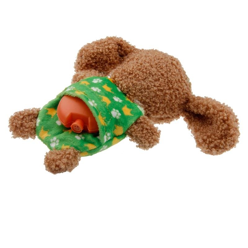 Į pliušinio pudelio nugarėlę galima įdėti cypsinčią pagalvėlę (jų rinkinyje yra dvi). Garsą skleidžiantys žaislai padeda ilgiau išlaikyti augintinio dėmesį žaidimo metu.