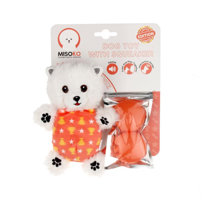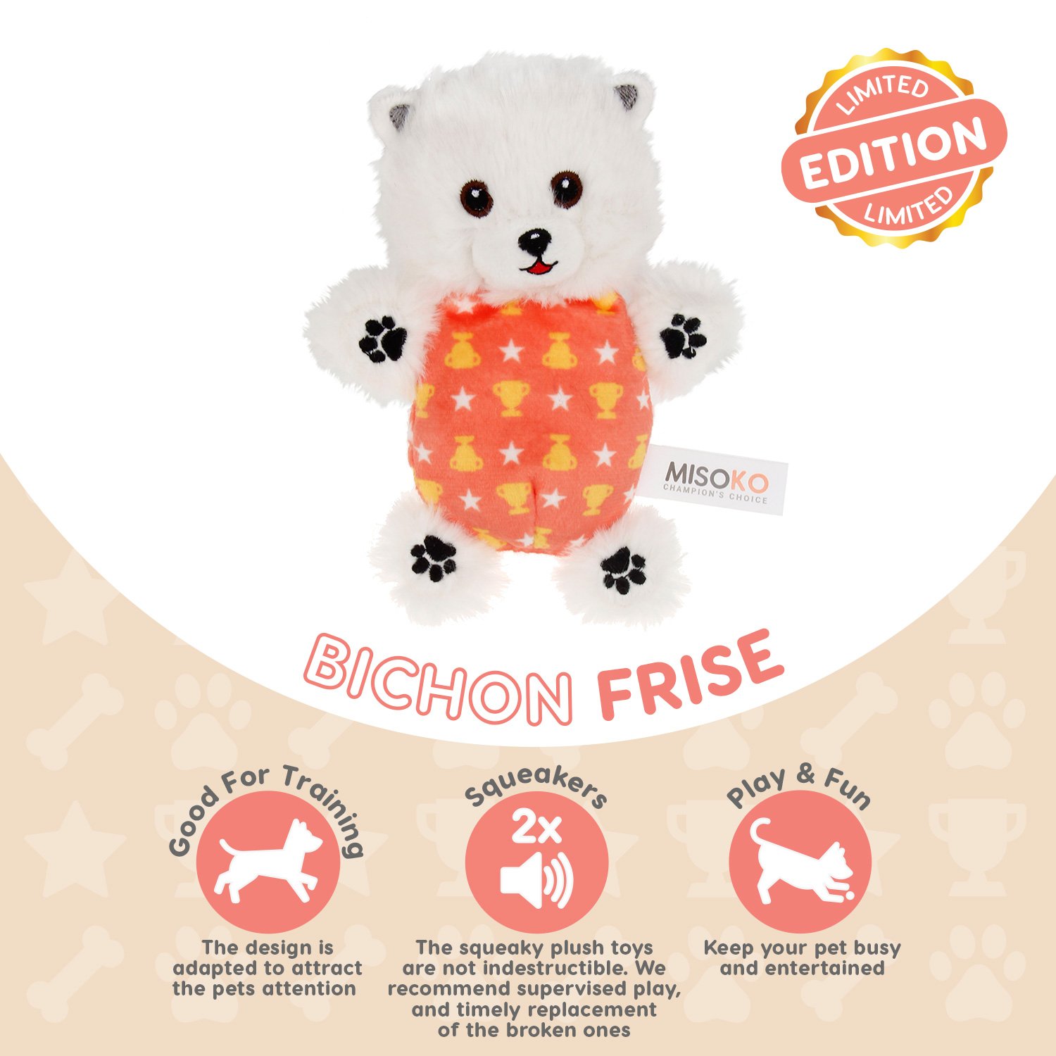 Our MISOKO limited eddition toys collection stands out for its charming representation of various dog breeds, bringing a personalized touch to playtime. Made with love and attention to detail, these toys are adorable and squeak for added excitement, making them irresistible to your pet. Designed with both fun and functionality in mind, our plush toys are perfect for training purposes. The squeaking feature entertains your pet and serves as a positive reinforcement tool during training sessions. Choose from our collection and treat your pet to hours of joy, mental stimulation, and a touch of personalized play with our breed-inspired plush toys because every dog deserves a toy as special as they are!