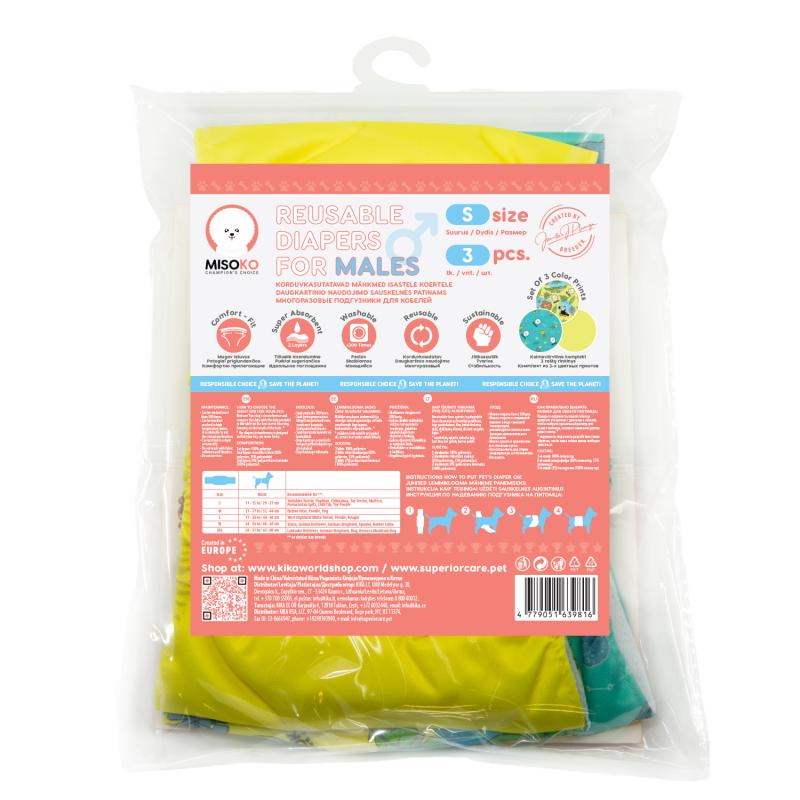 MISOKO reusable diapers for male dogs are a practical and effective solution when you want to maintain a spotless cleanliness at home or when travelling. These diapers are not just for pets that don’t hold their urine; they are also suitable for those who tend to mark their territory aggressively. With their vibrant colours and cheerful designs, the reusable diapers don’t just serve a practical purpose – they also add a touch of playfulness to your pet’s look!