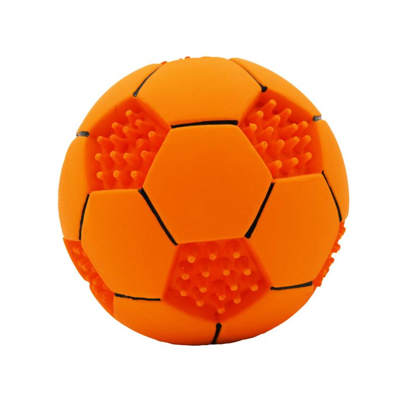 MISOKO hundleksak i form av en fotboll – ett färgstarkt, elastiskt och säkert val för aktiv lek. Tillverkad av slitstark latex, lätt att bära och fånga.